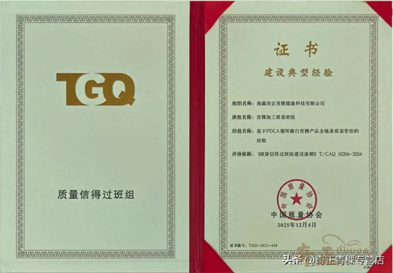 近日,西藏奇正青稞健康科技有限公司(簡稱奇正青稞)因在產(chǎn)品質(zhì)量管理方面的突出實(shí)踐與成效,榮獲全國質(zhì)量協(xié)會(huì)授予的 “質(zhì)量信得過班組建設(shè)典型經(jīng)驗(yàn)”榮譽(yù)稱號(hào)。